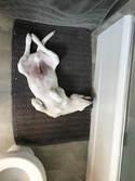 Berger is already 26 pounds! He’s doing great with potty training. He’s going out on his own if the door is open & hasn’t had an accident for 10 days. He’s a very sweet boy. He sleeps on the bath mat while I shower. Sometimes on his back with his legs in the air. He’s a lot of fun.